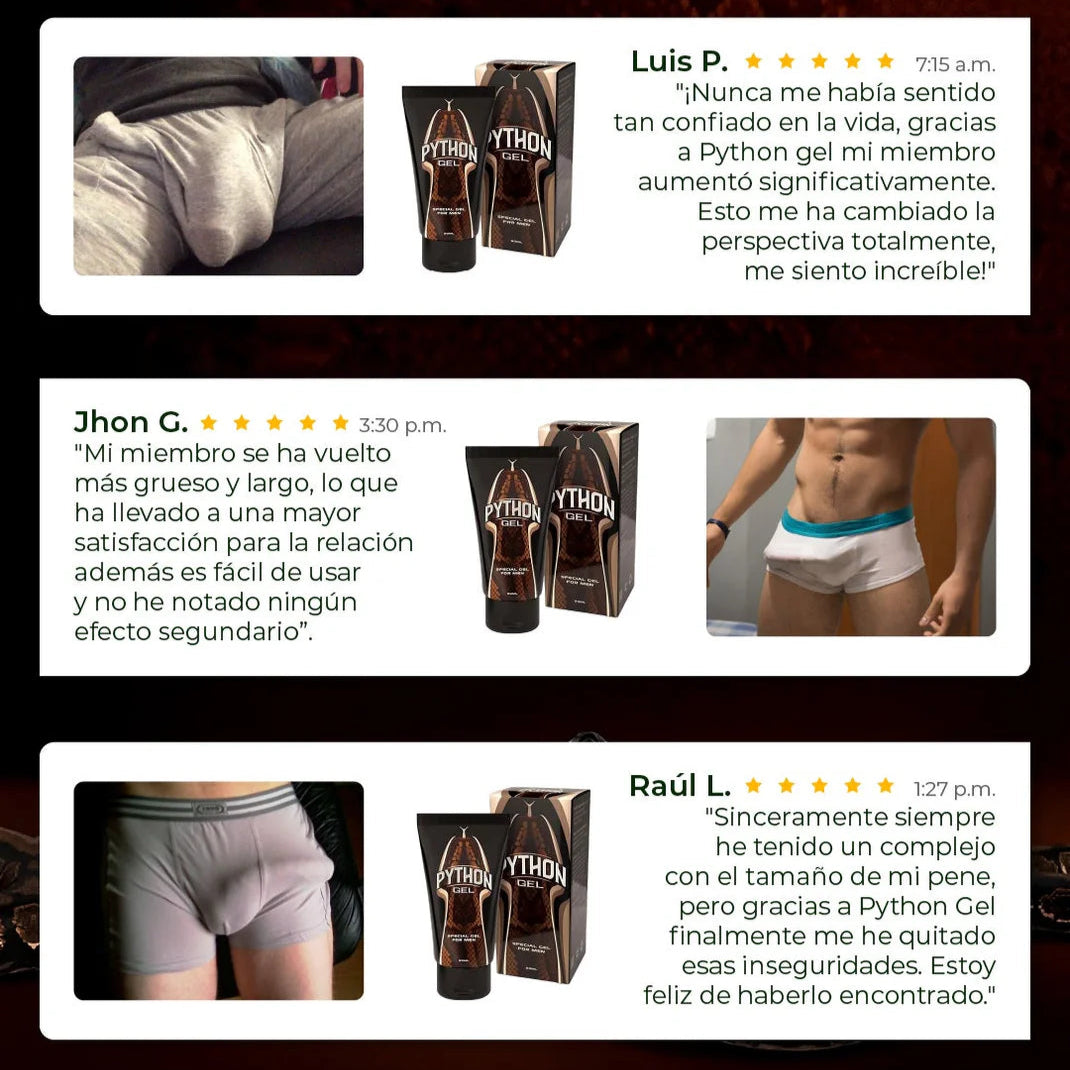 Muchos usuarios han experimentado un aumento en su confianza personal gracias a los beneficios tangible de la crema. "PYTHON MAX GEL cambió mi vida", afirma un cliente satisfecho.